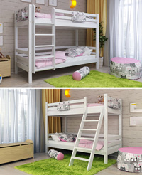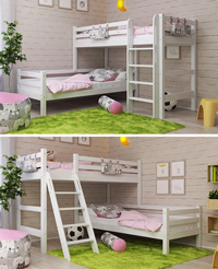 Лестница у кровати может быть 2х видов и можно дополнительно укоплектовать горкой: