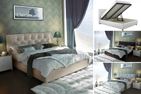 Кровать Домино 2 с подъемным механизмом  оборудованна встроенным основанием и подъемным механизмом, который поможет быстро открыть вместительный ящик для постельного белья и пренадлежностей разделенный на секции.