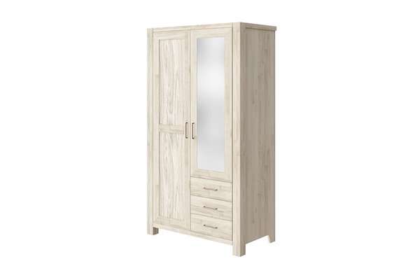 Классический распашной шкаф Fiord 2-х дверный с зеркалом выполнен в скандинавском стиле и хорошо впишется в спальню или прихожую. Шкаф изготовлен из натурального дерева, различных пород на ваш выбор дуб, бук, сосна, береза. Богатый выбор расцветок подойдут под любой интерьер. Зеркало на фасаде не только поможет вам одеваться, но и визуально расширит и осветлит пространство за счет отраженного света. Левая половина шкафа разделена на 2 части, основная ниша пространство для рубашек, платьев с продольным вешало и верхняя полка для шляп, коробок или чемодана. В правой половине шкафа вверху предусмотрены 3 полки для хранения одежды и белья с возможностью регулировки высоты на 3-х уровнях. Справа внизу шкафа 3 выдвижных ящика для хранения вещей на направляющих с доводчиками. Удобные ручки скобы. |