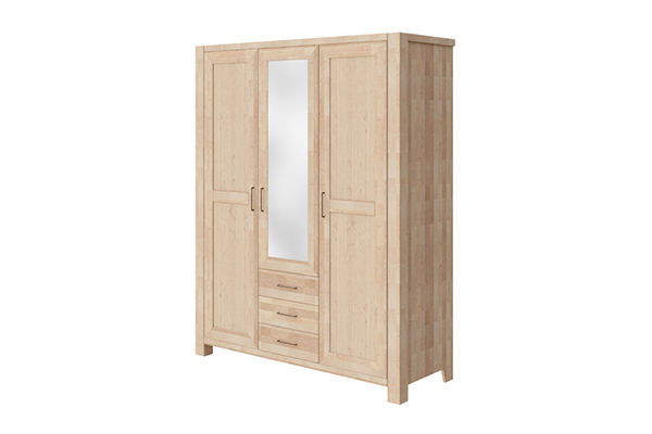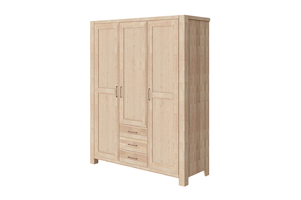 Классический распашной шкаф Fiord 3-х дверный - изготовлен из натурального массива и выполнен в скандинавском стиле. Шкаф очень вместительный и подойдет для любой комнаты. Шкаф изготовлен из натурального дерева, различных пород на ваш выбор дуб, бук, сосна, береза. Богатый выбор расцветок подойдут под любой интерьер. Правая и левая секция представляют собой вместительные ниши с продольным вешалом для платьев и рубашек и верхней полкой для шляп и коробок. В центральной секции шкафа вверху предусмотрены 3 полки для хранения одежды и белья с возможностью регулировки высоты на 3-х уровнях. Внизу расположены 3 выдвижных ящика для хранения вещей на направляющих с доводчиками. |